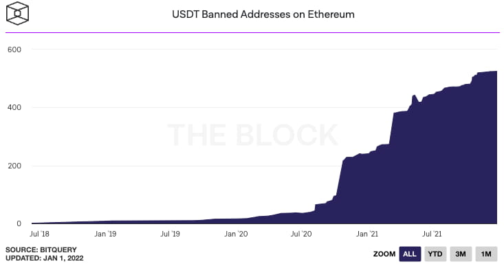 4. Stablecoin issuer Tether froze over $1 million worth of USDT last week