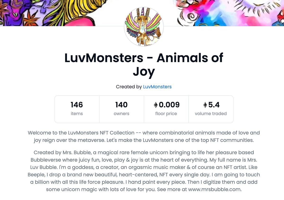 Mrs. Luv Bubble currently plans to keep doing 1 per day until we reach 5,000 LuvMonsters, so these first 100 may end up being quite something special. You can collect them here — and be sure to join our Telegram group here for early drop announcements.