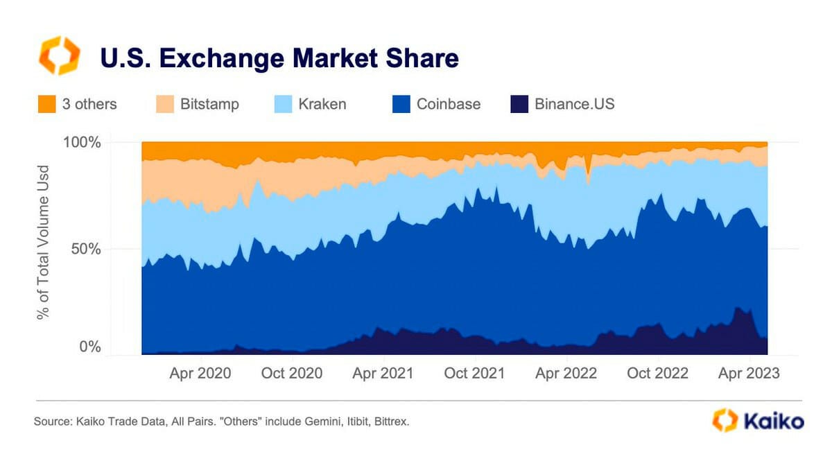 2. Coinbase may account for just 6.5% of global volume, but U.S. market share is a whopping 53%