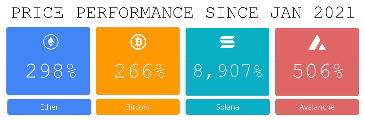 Price performance since we began writing Coinstack in January 2021