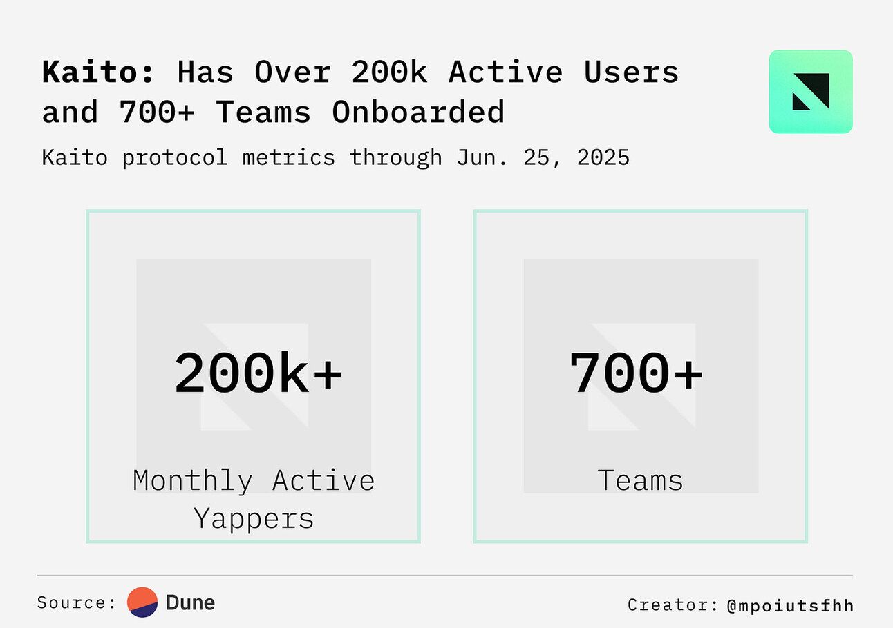 Kaito is a web3-native search and intelligence platform that consolidates fragmented data from blockchains, forums, social media, and other sources into a unified layer. Its core products Kaito Pro and Kaito Connect offer vertical search and attention-based distribution through Yaps. With over 200,000 active users and over 700 teams onboard, Kaito is gaining traction as a go-to tool for research, analytics, and decision-making in the crypto space.