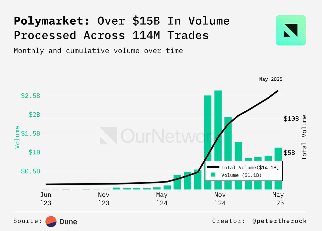4. 📈 Polymarket is Growing Fast — and Getting it Right Thanks to Rising Volumes, Consistent Usage, and Over 90% Predictive Accuracy