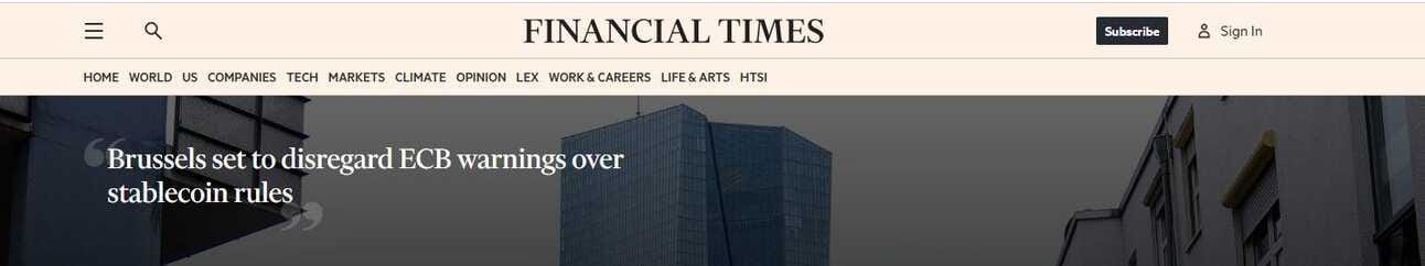⚖️ European Commission to ease rules on foreign stablecoins despite ECB opposition:The European Union is preparing to relax its stance on foreign-issued stablecoins, potentially allowing U.S. dollar-backed tokens like USDC and USDT to circulate freely within the bloc.