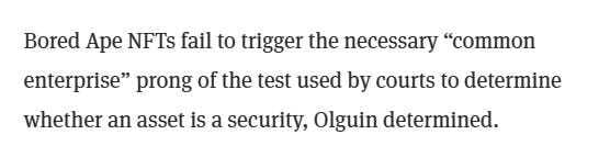 ⚖️Bored Ape NFTs Are Not Securities, Court Rules in Landmark Decision:A federal judge in California has tossed out a class-action lawsuit against Yuga Labs, creator of the once-dominant Bored Ape Yacht Club NFT collection, ruling that the digital collectibles cannot be considered securities.