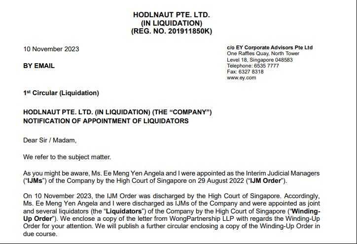 ⚖️Distressed crypto lender Hodlnaut starts liquidation in Singapore: Hodlnaut, a Singapore-based crypto lending firm, will be liquidated by its previously appointed judicial managers, according to a document published by auditing firm EY.