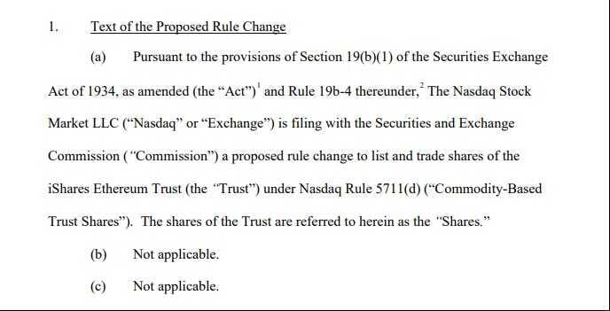 ⚖️ Nasdaq files for BlackRock's proposed iShares Ethereum Trust ETF: BlackRock, the world's largest asset manager, is confirmed to be working on a spot ether ETF, according to a 19b-4 filing made on Thursday afternoon.