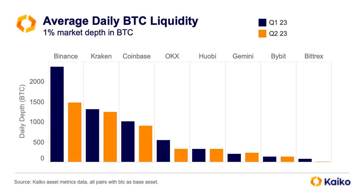 3. Binance has seen the strongest drop in BTC liquidity in Q2 relative to the previous quarter.