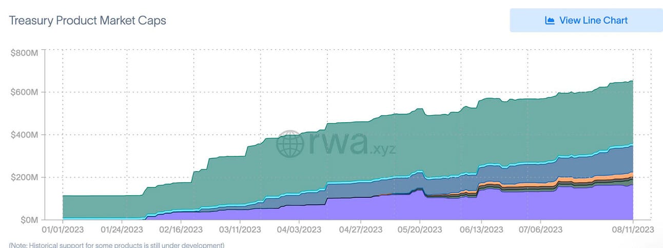 2. Tokenized real-world assets (RWAs), specifically treasury products (e.g. US treasuries, bonds, and cash-equivalents), continue to gain momentum and have now eclipsed $650M TVL.