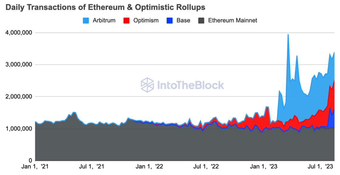 5. Transaction numbers between Ethereum Mainnet & major optimistic rollups just hit their 2nd highest value ever. The total number of transactions is now roughly 3x higher than during the bull market peak.