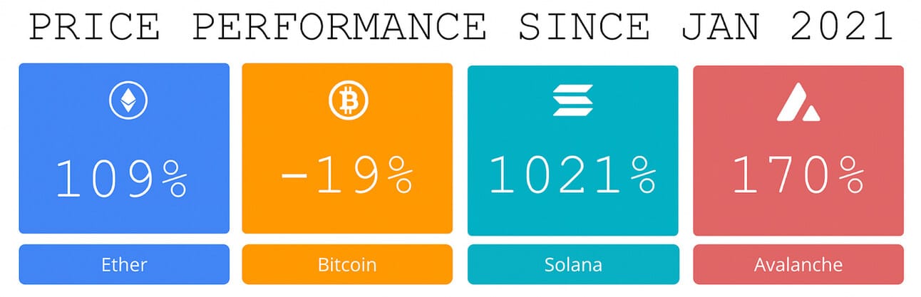Price performance since we began writing Coinstack in January 2021