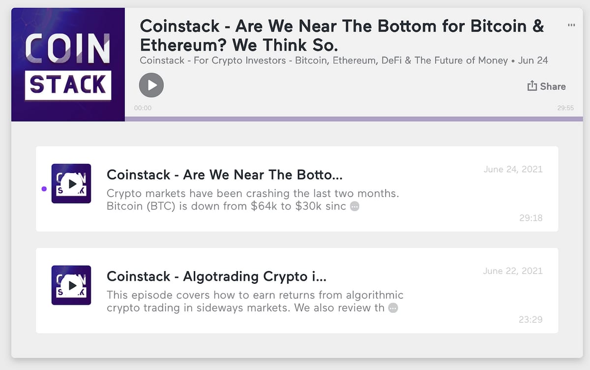 We now have a new Coinstack podcast. Last week we published podcasts on Algorithmic trading and one on being at or near the crypto market bottom.