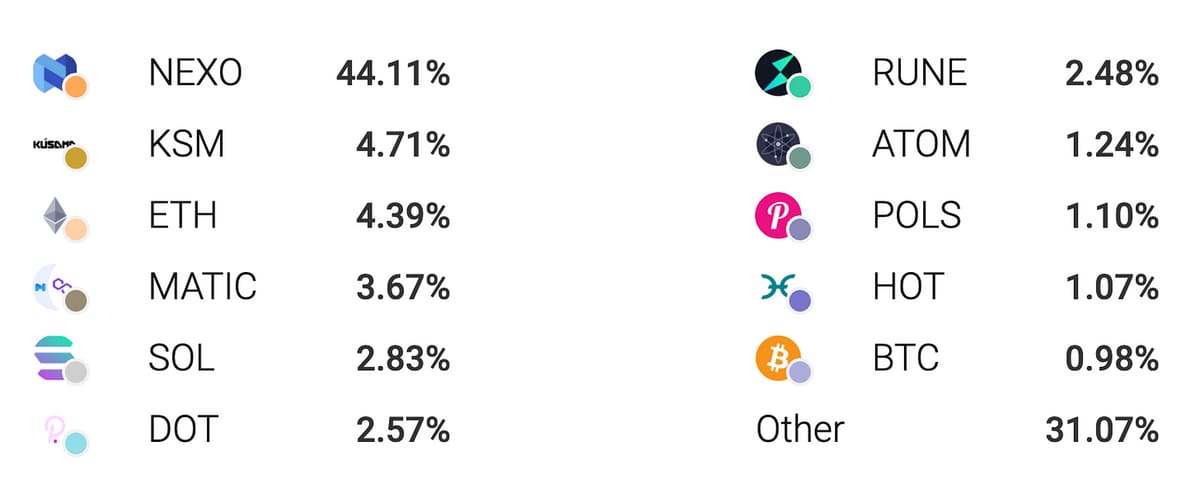If we were creating a portfolio from scratch right now that we didn’t want to touch for 5-10 years, we would be absolutely sure to include our top 5: ETH, DOT, KSM, RUNE, & NEXO. Here’s our top 30 for a well-rounded long-term crypto portfolio…