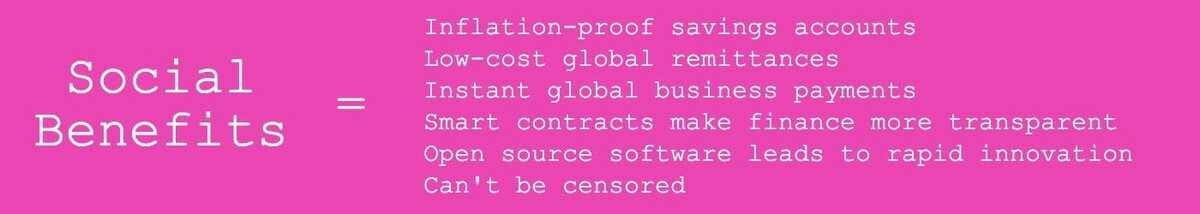 New money creation causes the wealthy who have investments like homes and stocks to get even richer as their investments increase in value while the poor have their minimal savings inflated away. Since Bitcoin has a fixed supply it isn’t really affected by inflation. Also Bitcoin and other digital currencies make it easy to send money instantly across the world at a very low cost -- making remittances cheap and easy -- which is very important for people in the developing world. Blockchains like Bitcoin are also extremely secure and hard to hack -- so the status of who owns what is protected over time.