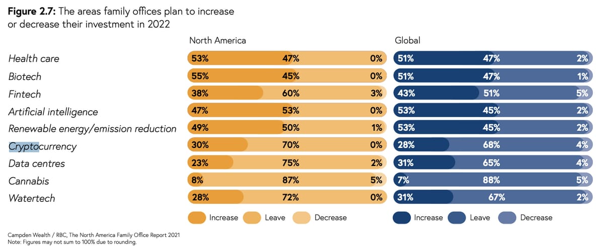 😮 Billionaires Own 4% of All Cryptocurrency Through Discrete Family Offices - Roughly one-third of family offices have invested in cryptocurrency in North America alone. (Source)