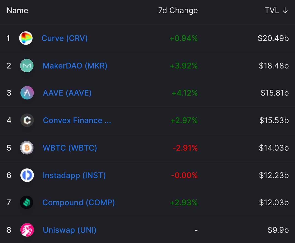 DeFi Leaders: Uniswap, Sushi, Compound, Aave, Maker, Curve, Yearn