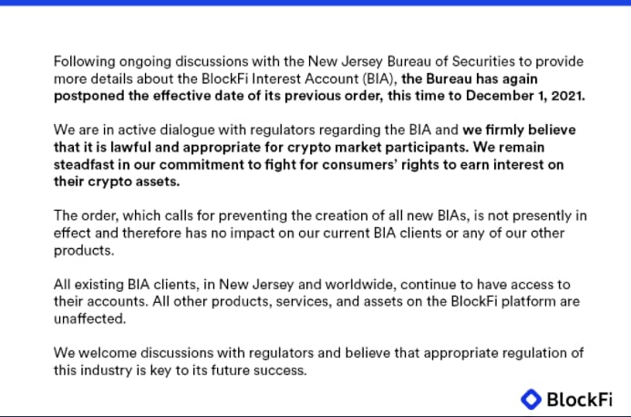 🎆 New Jersey Delays Effective Date of Cease-and-Desist Order for BlockFi Until December - NJ issues a cease-and-desist for new interest accounts at BlockFi, which will take effect on Dec 1. (Source)