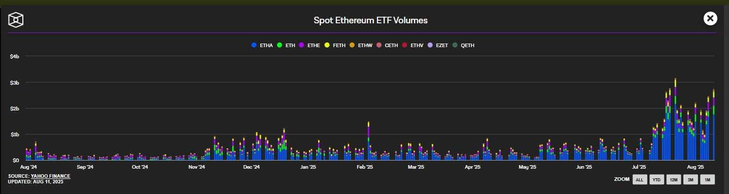 ETH ETFs now hold more than 6,100,000 ETH ($26.8B) and account for 5% of the entire supply.