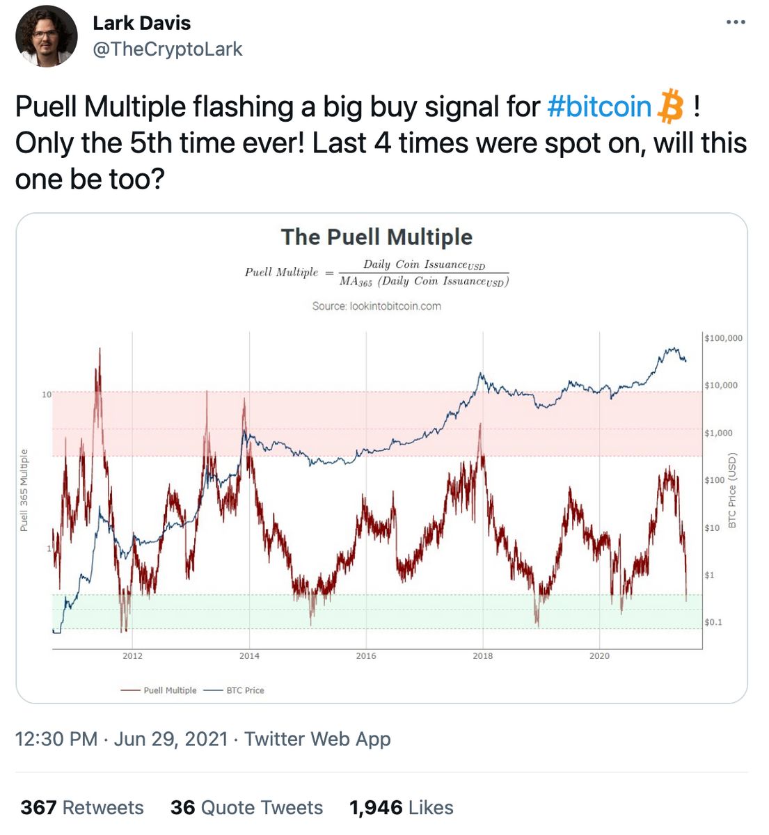 Lark Davis Says It’s Time to Buy Based on the Puell Multiple