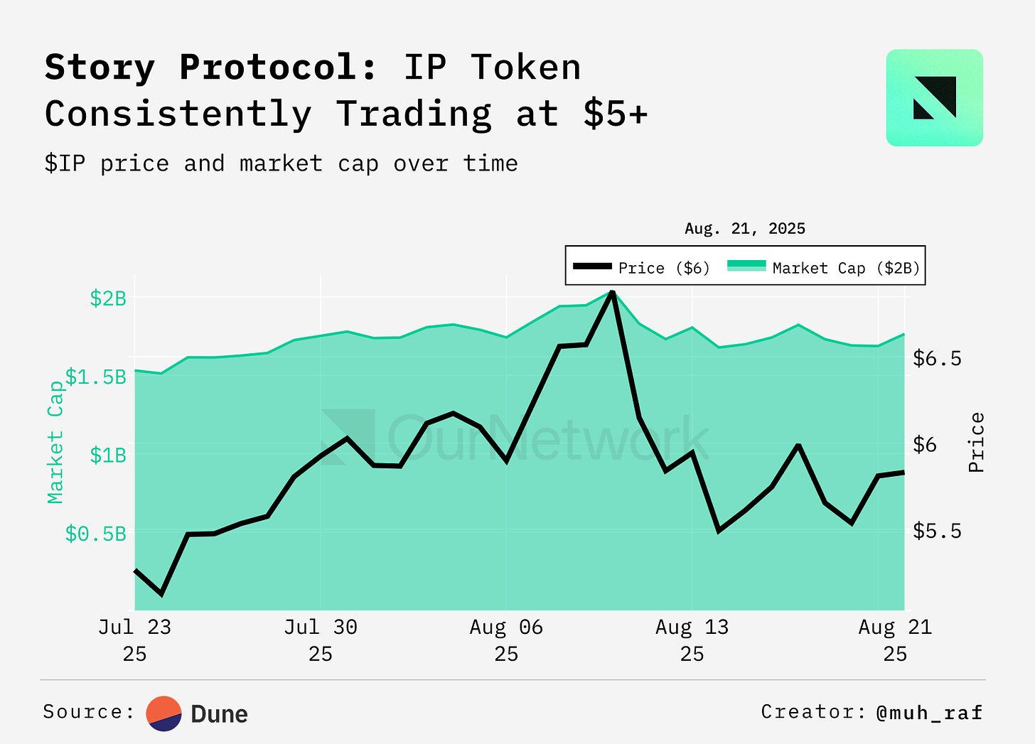 Story is an EVM-compatible Layer 1 blockchain that provides infrastructure for IP management. It empowers artists, musicians, and creators to monetize and protect their work, tackling the opacity and exploitation in traditional royalty systems. Boasting a robust $1.7B market cap with its IP token trading above $5 for 30 days, Story signals strong investor and societal confidence, highlighting the urgent need for transparent IP solutions.