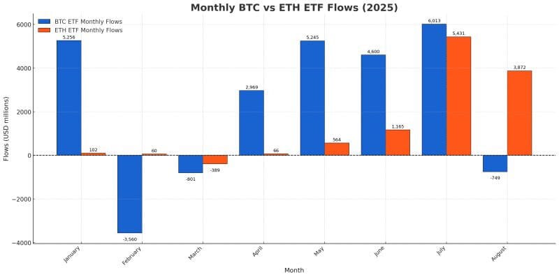 +$3.87B for ETH vs. –$749M for BTC