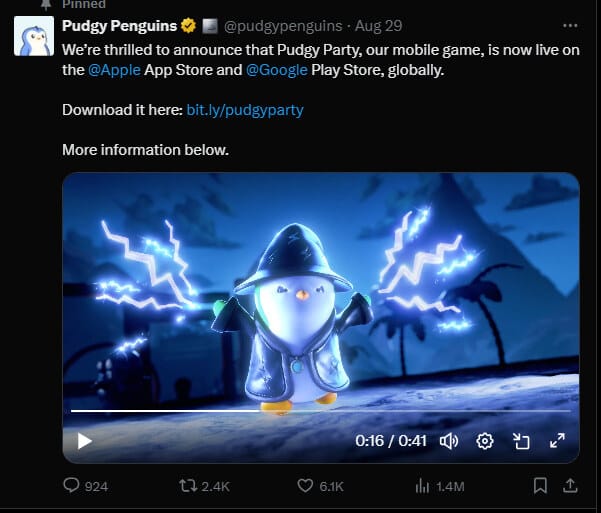 🧑⚖️ NFT brand Pudgy Penguins waddles into mobile gaming with launch of Pudgy Party:The popular NFT brand Pudgy Penguins and FIFA Rivals creator Mythical Games announced the global launch of the web3 mobile game Pudgy Party on Friday.