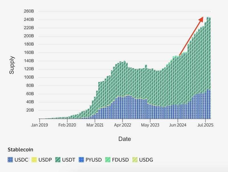 1. Fiat-backed stablecoins reached yet another all-time high in August, climbing to $247B in circulation (+5% month-over-month).