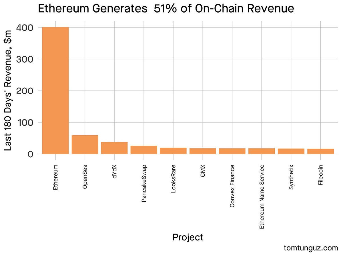 1/ In the last six months, 103 web3 companies generated revenue on-chain, the smallest of which recorded a few hundred dollars of sales & the largest, Ethereum, tallied $401m.