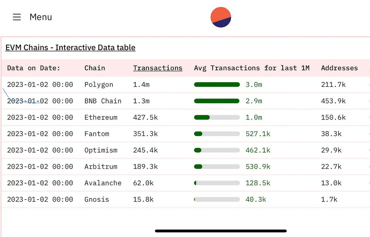 4. Polygon has overtaken BNB Chain in total & average transactions metrics over the past 30 days