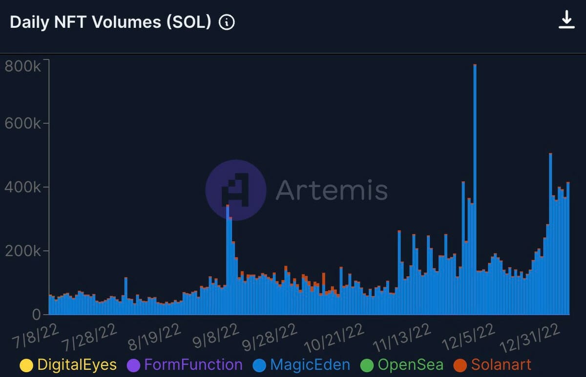 2. Daily NFT volumes on Solana have been growing despite the bear