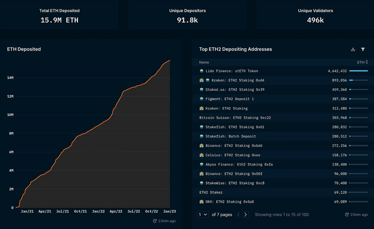 3. 15.87 million $ETH ($19.3 billion) has been staked, accounting for 13.2% of all circulating ETH