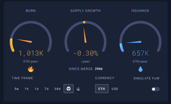 2. Since “The Merge” ETH has remained deflationary with -0.30% supply growth