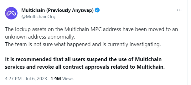 🎭 Multichain Bridges Exploited for Nearly $130M Across Fantom, Moonriver and Dogechain- Cross-chain router protocol Multichain has been exploited for nearly $130 million after an attacker siphoned capital out of numerous token bridges.