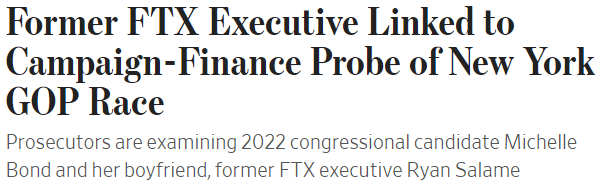 ⚖️ Former FTX Exec Probed Over Possible Campaign Finance Violations- Ryan Salame, a former senior executive at bankrupt crypto exchange FTX, is being investigated by federal prosecutors in Manhattan over potential violations of campaign finance law.
