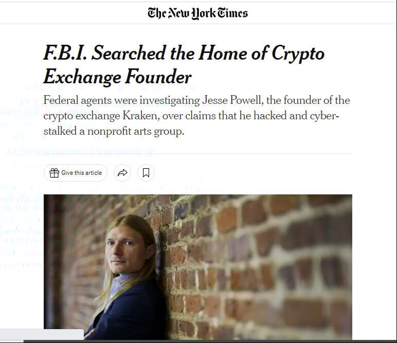 🔍 Kraken Co-Founder Jesse Powell Under Federal Investigation on Claims of Hacking, Cyberstalking Non-Profit-The F.B.I. searched the home of the cryptocurrency executive Jesse Powell in March as part of a criminal investigation into claims that he hacked and cyber-stalked a nonprofit that he founded, three people with knowledge of the matter said.