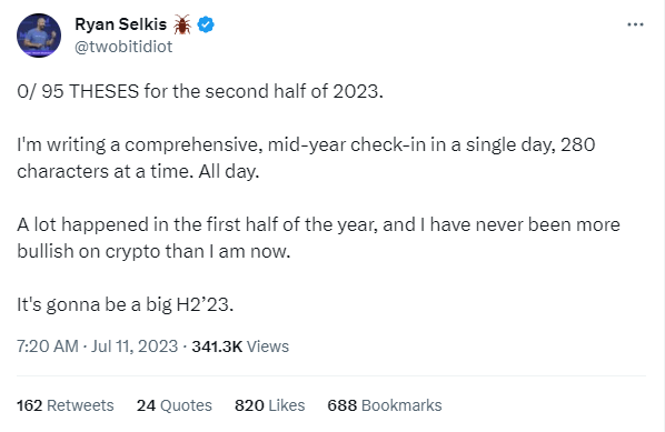 Issue Summary: Welcome back to Coinstack, the weekly newsletter for institutional crypto investors and industry insiders. We review the top news, stats, and reports in the digital asset ecosystem for our 115k weekly subscribers. This week we cover Gemini suing DCG, former FTX executive Ryan Salame being caught in a federal campaign finance probe, Multichain Bridges bring exploited for ~$130M, Ryan Selkis’ 2H 2023 Crypto Theses, and big new venture rounds for Sound ($20M) and Alluvial ($12M). Join our daily crypto news roundup here.