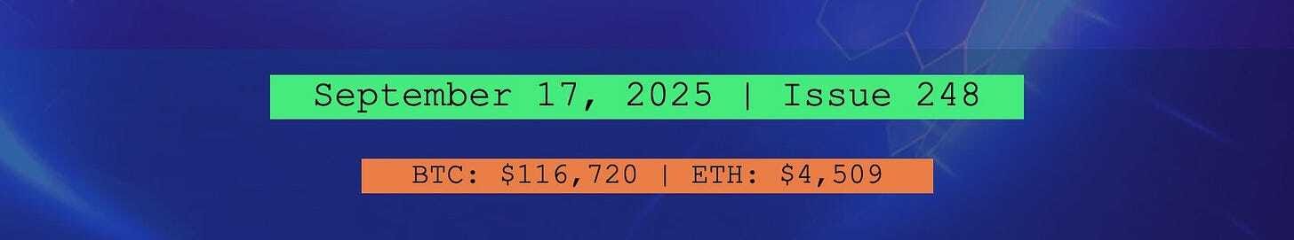 Issue Summary: Welcome back to Coinstack, the weekly newsletter for institutional crypto investors and industry insiders. We reviewed the top news, stats, and reports in the digital asset ecosystem for our 330k weekly subscribers. This week, SEC Chair Atkins said onchain capital raising should come “without endless legal uncertainty,” the SEC delayed decisions on several ETFs tied to staking and altcoins, and the SEC and Winklevoss-led Gemini reached a “resolution in principle” over their years-long Gemini Earn lawsuit. On the fundraising front, Figure raised $787.5M in an IPO to scale its Provenance Blockchain-based financial services, while Gemini raised $425M through its own IPO, selling 15.18M Class A shares at $28 each.