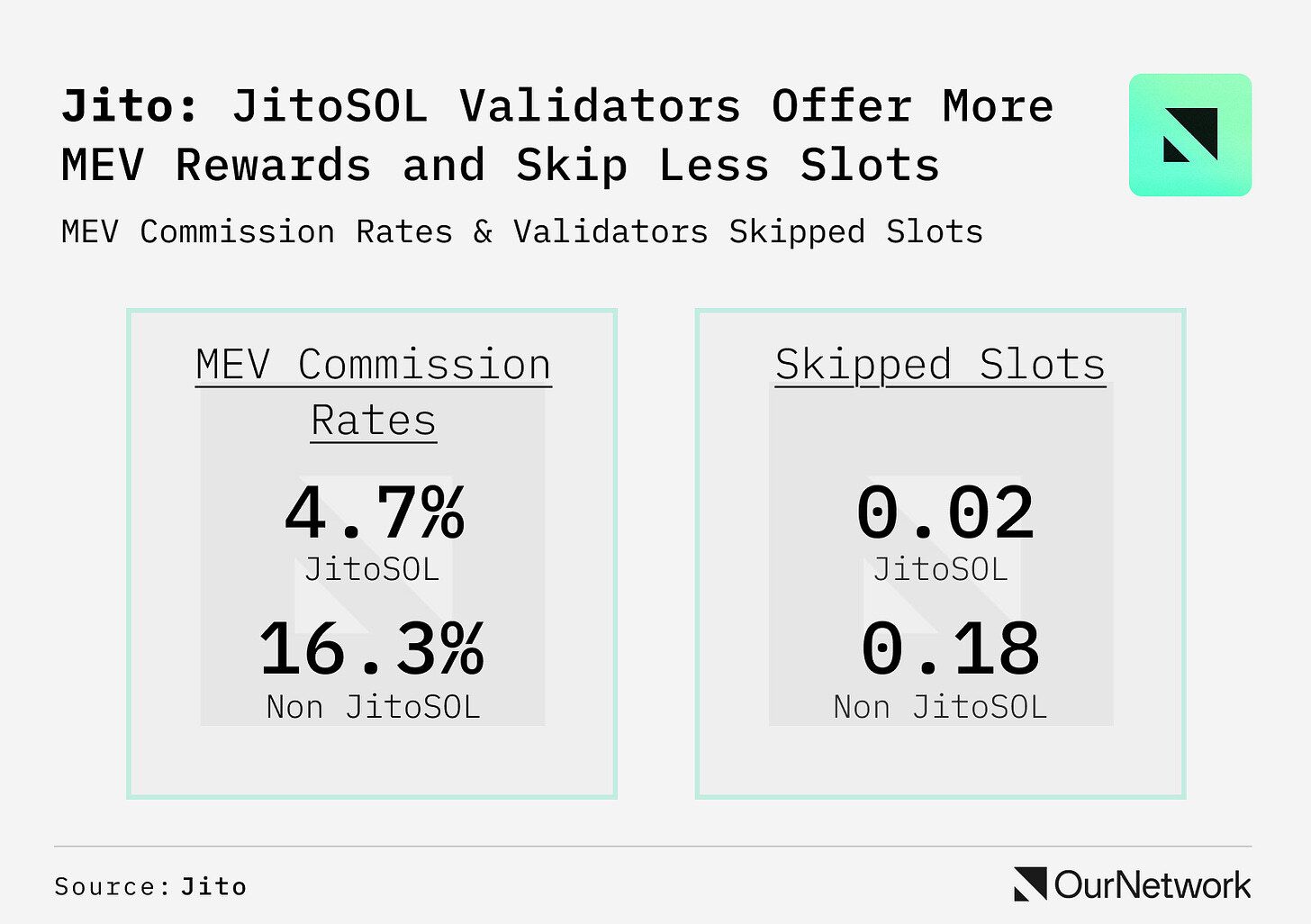 1. JitoSOL leverages a novel onchain programmatic stake delegation protocol: StakeNet stores key validator history, and the Steward Program rebalances stake across ~200 validators based on validator history and criteria that optimizes higher performance and low commissions. This improves Solana's performance and decentralization, increases the amount of revenue distributed to stakers, automatically and transparently diversifying delegation risks across a set of highly qualified validators.