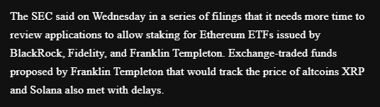 ⚖️ SEC delays decisions on several ETFs tied to staking and altcoins: The Securities and Exchange Commission (SEC) delayed decisions on three crypto exchange-traded funds (ETFs) on Sept. 10.