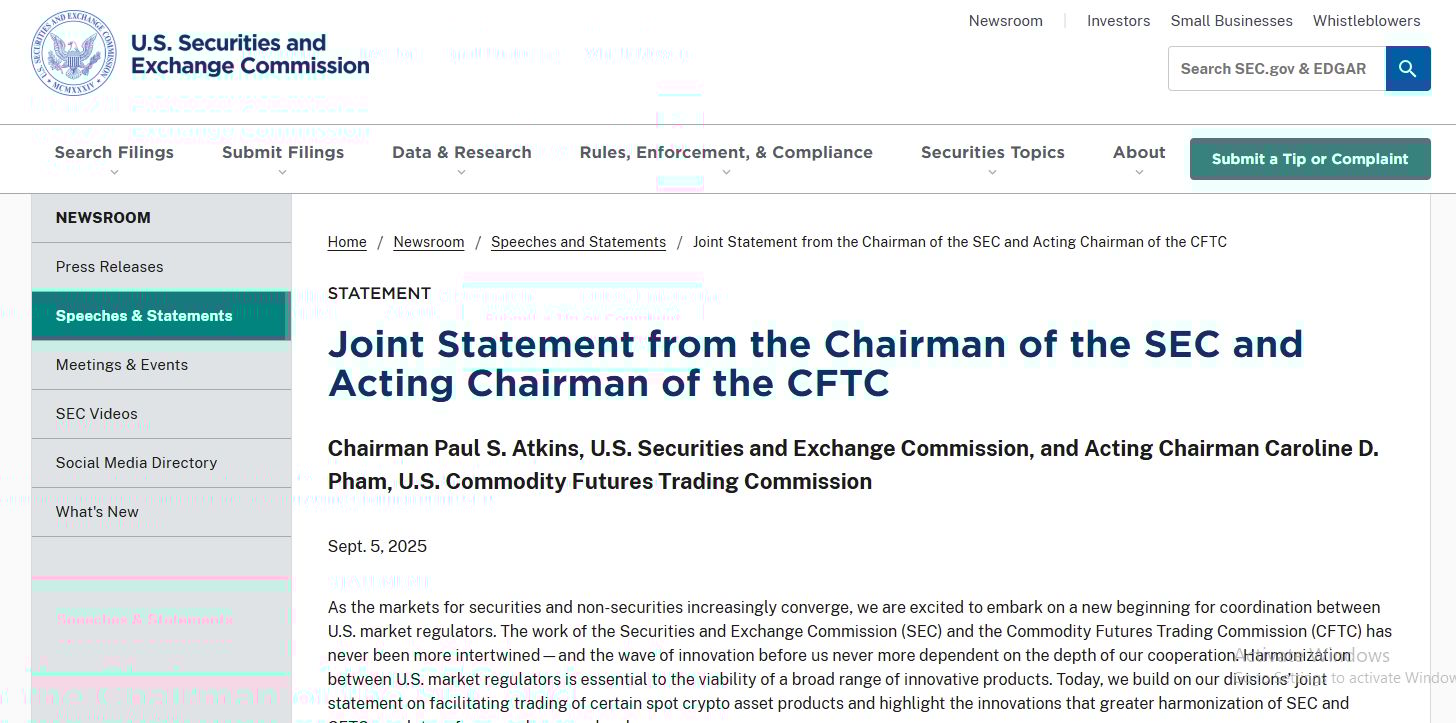 ⚖️SEC and CFTC aim to harmonize crypto rules, boost US market leadership:The U.S. Securities and Exchange Commission (SEC) and the Commodity Futures Trading Commission (CFTC) will hold a joint roundtable on Sept. 29 to advance regulatory coordination in the digital asset sector.
