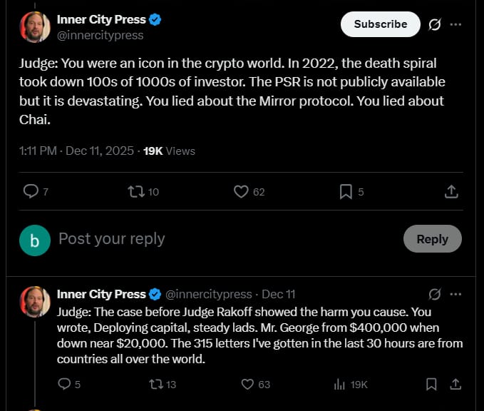 ⚖️ Terraform Labs founder Do Kwon sentenced to 15 years over $40 billion Terra-Luna collapse:Terraform Labs founder Do Kwon was sentenced to 15 years in prison for his role in the collapse of the and Luna tokens — an implosion that wiped out $40 billion in 2022.