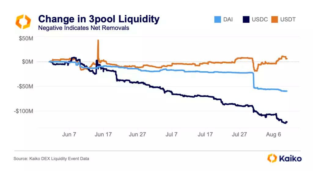 5. Since the start of June over $175mn has left the Curve 3pool, led by USDC despite Maker DAO increasing the Enhanced DAI Savings Rate.