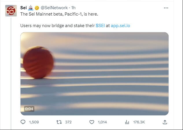 🚀 Sei Mainnet is Live After Testnet Sees More Than 7.5M Wallets Created- Sei Labs, the company behind layer 1 blockchain Sei, has announced that its mainnet is now live after a successful testnet phase. The blockchain's native token SEI also went live today on exchanges such as Binance, Kraken and Huobi, among others