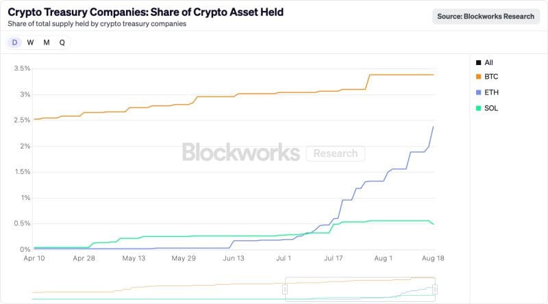 2. It's pretty wild that in less than 2 months, over 3% of the entire supply of ETH was scooped up by treasury companies.