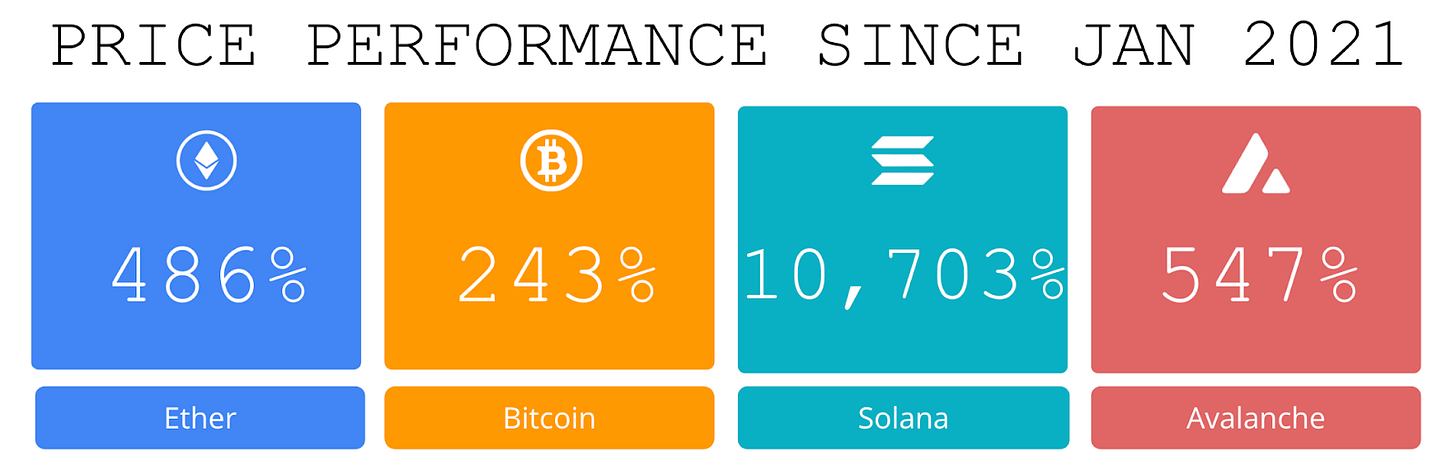 Price performance since we began writing Coinstack in January 2021