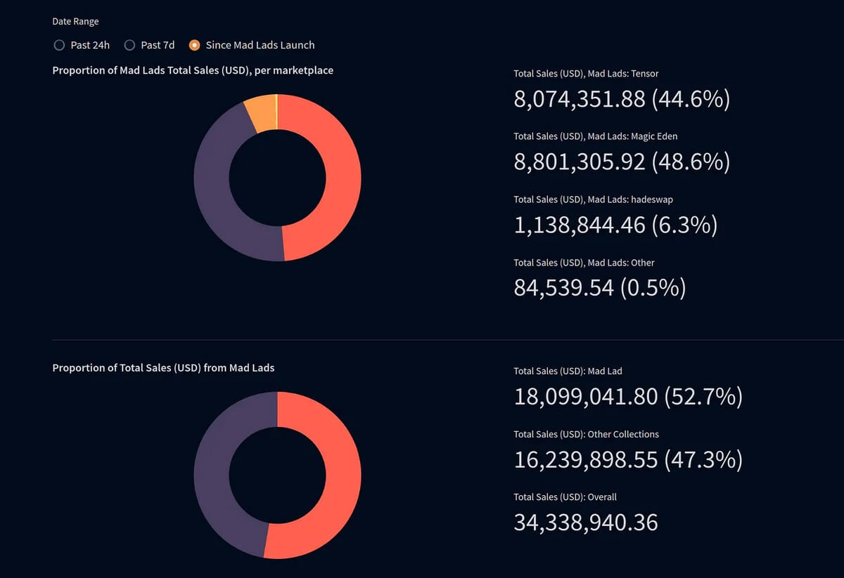 3. Over half of Solana NFT sales volume is from Mad Lads since its launch ($18M; ~830K SOL)