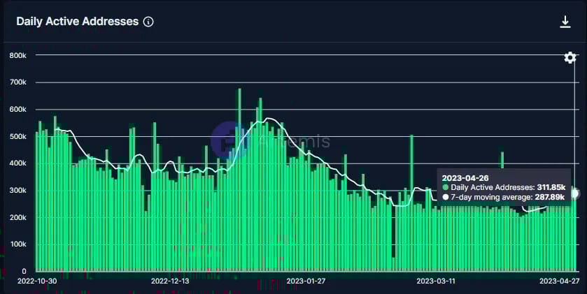 Since the Shapella upgrade, there has been a net outflow of 320,000 ETH from the staking contract. A gross total of ~2 million ETH has been withdrawn, of which 1.03 million ETH were full withdrawals and 980,000 ETH were partial withdrawals.