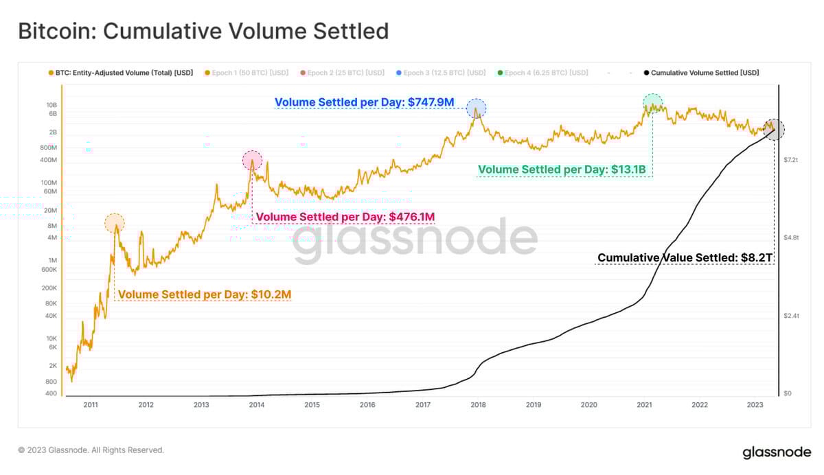 5. Since inception, without requiring any third party authority, the Bitcoin network has settled a staggering $8.2T in uncensorable transfer volume when adjusting for non-economic transactions.