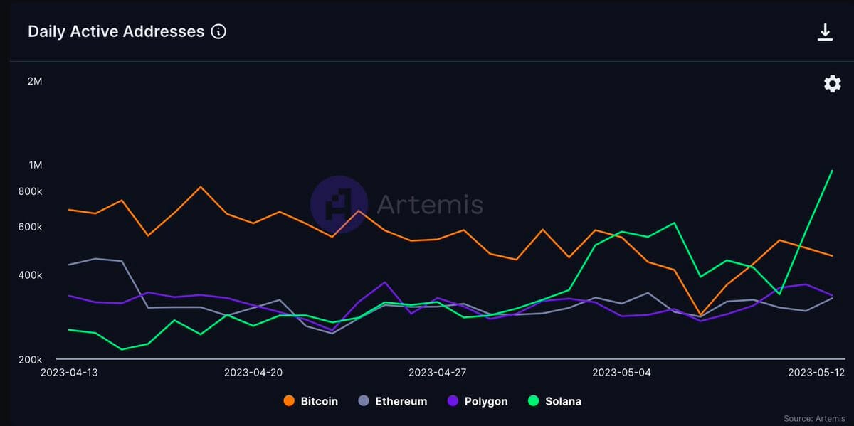 1. Solana is at nearly 1M daily active addresses as it adds over 600,000 in just 2 days.