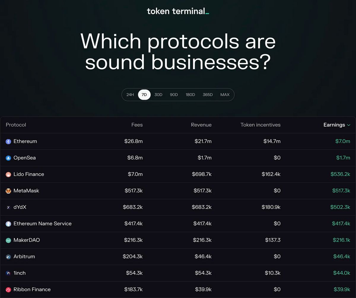📊 Key Stats - 11.9% of ETH is Staked, Top 10 Projects by Earnings in the Past 7 Days, Maple Finance Dominating Institutional Lending