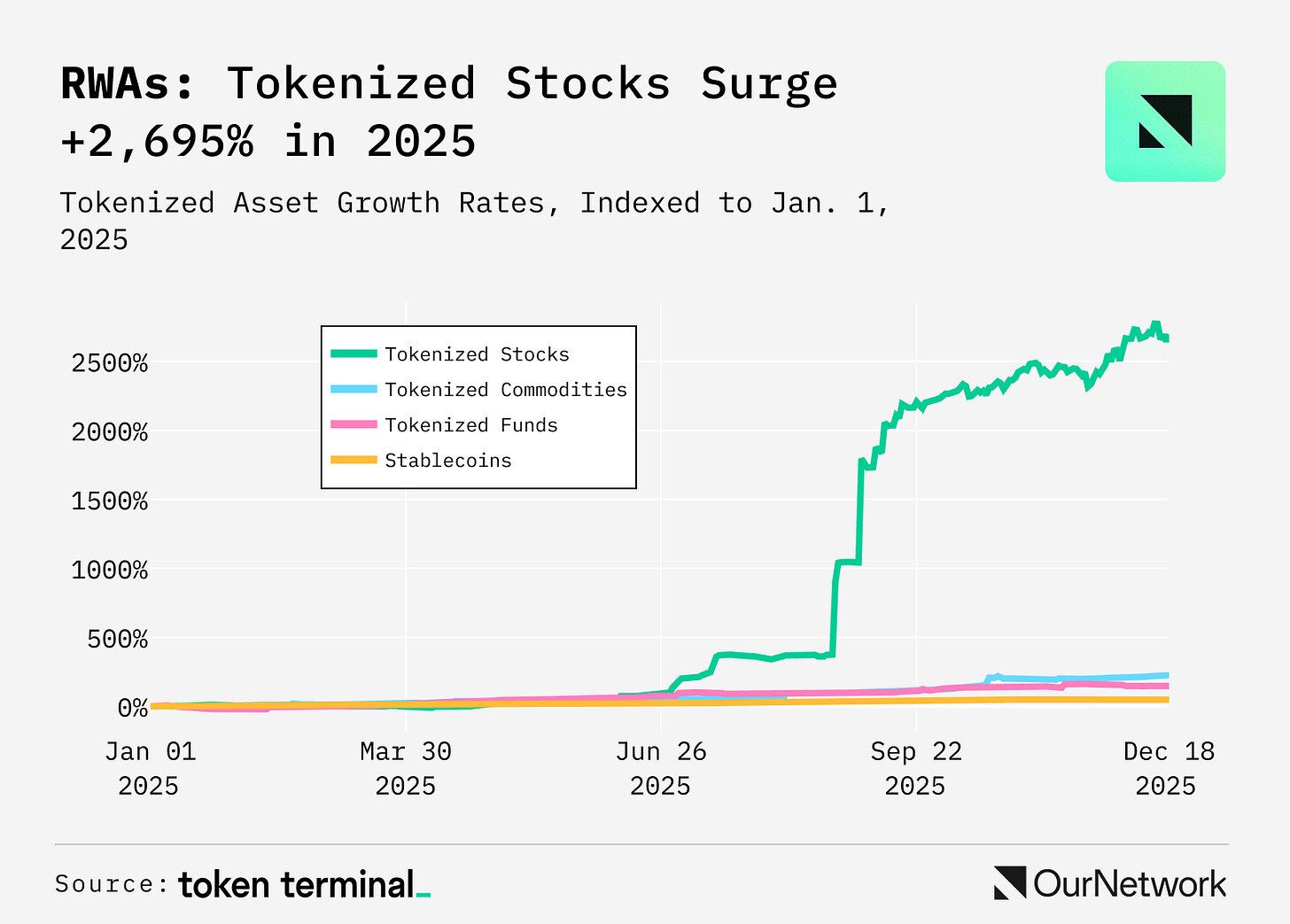 📈 Tokenized Stocks Grew 2,695% Year-to-Date, More Than Any Other Category of Tokenized Assets in 2025